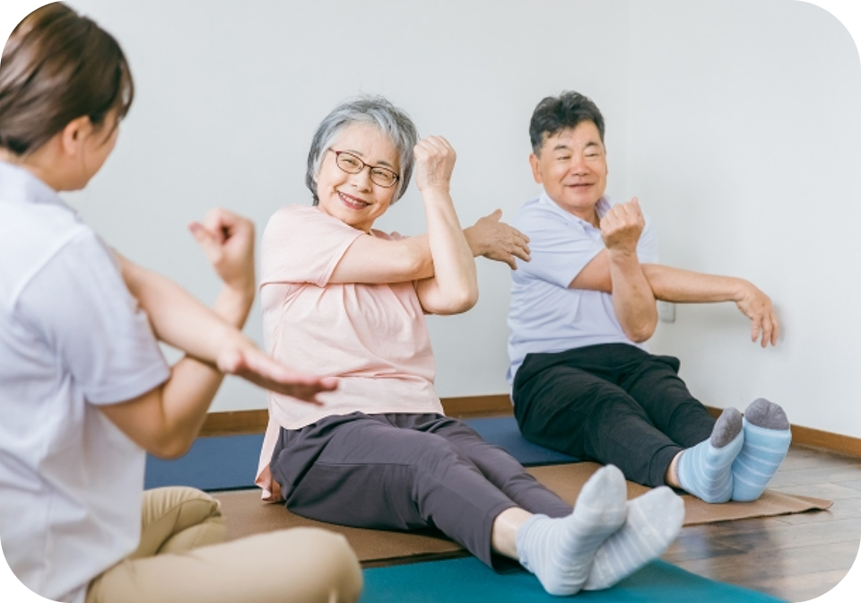 筋肉の硬直を防ぎ、関節の動きや血流の改善が期待できます。 寝たきりの予防や、日常生活動作(ADL)の維持・向上にもつながります。